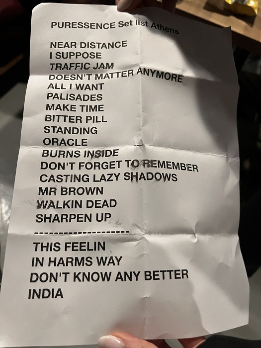 Η ατμόσφαιρα ήταν εκρηκτική, με τους Puressence να επιβεβαιώνουν ότι παραμένουν μια αυθεντική φωνή της indie σκηνής, γεμάτη από ειλικρίνεια και ανόθευτο/ αγνό συναίσθημα.