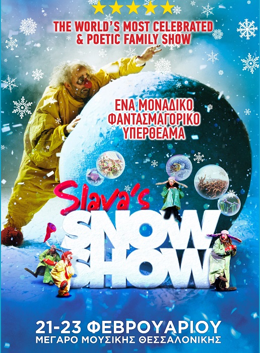 Η πιο εντυπωσιακή χιονοθύελλα στον πλανήτη έρχεται στη Θεσσαλονίκη! 21 - 23 Φεβρουαρίου 2025 Μέγαρο Μουσικής Θεσσαλονίκης Η «διασημότερη διαδραστική παράσταση στον πλανήτη Γη», μια ανεπανάληπτη εμπειρία για όλη την οικογένεια, ένα φαντασμαγορικό υπερθέαμα από τον φημισμένο μίμο Slava Polunin έρχεται στη Θεσσαλονίκη, στο Μέγαρο Μουσικής, από 21 έως 23 Φεβρουαρίου. Ένα μοναδικό στη σύλληψη θέαμα, που πηγάζει «από την ιδιοφυΐα του Σλάβα Πολούνιν», του μεγαλύτερου εν ζωή μίμου του κόσμου, όπου οι θεατές όχι μόνο συμμετέχουν στη δράση, αλλά γίνονται κομμάτι της και εξελίσσουν οι ίδιοι την πλοκή! ![]() Το Slava's Snow Show είναι ένα διαχρονικό αριστούργημα που έχει μαγέψει και συγκινήσει εκατομμύρια θεατές σε δεκάδες χώρες και εκατοντάδες πόλεις, μέσα από αμέτρητες παραστάσεις. Προσφέρει μια μοναδική οπτικοακουστική εμπειρία, συνδυάζοντας την τέχνη της μιμικής, τη μουσική και το χιούμορ. Ένα ταξίδι γεμάτο μαγεία, αστεία στιγμιότυπα, γέλιο και συγκίνηση. ![]() Στη Νέα Υόρκη, το Snow Show έγραψε ιστορία, σπάζοντας όλα τα ρεκόρ, καθώς για τρία συνεχή χρόνια παιζόταν off-Broadway στο Union Square Theatre και όταν μεταφέρθηκε στο Broadway, συνέχισε να παίζετε για δύο επιπλέον χρόνια. Παρίσι, Λονδίνο, Ρίο ντε Τζανέιρο, Οσάκα, Μόντρεαλ, Ρώμη, Μαδρίτη, Χονγκ Κονγκ, Μόσχα, Λος Άντζελες, Σάο Πάολο, Σεούλ, Σαγκάη και Βερολίνο είναι μερικές μόνο από τις μητροπόλεις που παραδόθηκαν ξανά και ξανά στη μαγεία του. Το Slava's Snow show έχει τιμηθεί με πάνω από 20 διεθνή βραβεία, όπως το Olivier Award για την Best Entertainment παράσταση, ένα Drama Desk Award για την Unique Theatrical Experience και μια υποψηφιότητα για το Tony Award. ![]() Είναι μια παράσταση που δεν μοιάζει με τίποτα από ό,τι έχετε δει έως τώρα, που ξεπερνά κάθε φαντασία! Με κορυφαίους μίμους, εντυπωσιακούς φωτισμούς και φαντασμαγορικά εφέ, η παράσταση διαδραματίζεται σε έναν σουρεαλιστικό κόσμο «αδέξιων τρελών». Κάθε σκηνή είναι σαν ένας ζωντανός, ζωγραφικός πίνακας: ένας καρχαρίας που κολυμπά σε θολά νερά, ένα κρεβάτι που μεταμορφώνεται σε βάρκα, πλοία που ταξιδεύουν μέσα στην εκτυφλωτική ομίχλη, συγκινητικοί αποχαιρετισμοί με μια κρεμάστρα (!) σε μια σιδηροδρομική πλατφόρμα, γιγάντια μπαλόνια, ένα πέπλο από βαμβάκι που αγκαλιάζει το κοινό, το Βόρειο Σέλας που εμφανίζεται σε απόσταση αναπνοής, το λαμπερό φεγγάρι και τα αστέρια που πλαισιώνουν έναν απέραντο, νυχτερινό, έναστρο ουρανό, ένα μικρό κομμάτι χαρτιού που μετατρέπεται σε πολική χιονοθύελλα και καθηλώνει τους θεατές καθώς τρία εκατομμύρια νιφάδες χιονιού πέφτουν πάνω τους . Αυτή είναι η μεγαλύτερη χιονοθύελλα που θα ζήσετε στη ζωή σας! ![]() Εκτός από την ομόφωνη αποδοχή του κοινού, η παραγωγή έχει κερδίσει και την αγάπη των κριτικών, οι οποίοι την έχουν χαρακτηρίσει ως «ένα έργο σπάνιας θεατρικής ομορφιάς που δεν πρέπει να χάσει κανείς» (London Daily Telegraph). Και όλοι ομολογούν ομόφωνα: «Τα σπάει! Καταιγισμός! Μια έκρηξη χαράς σε κάθε επίπεδο.» (Time Out London) «Δεν παύει να εκπλήσσει.» (The Independent) «Το Slava's Snow Show είναι για την τέχνη της μιμικής ό,τι είναι το Cirque du Soleil για το τσίρκο... την επαναπροσδιορίζει. Το Slava's Snow Show είναι μια παράσταση τόσο θεατρική όσο και απλή, τόσο καθηλωτική όσο και εμπνευστική, που προσφέρει στο κοινό ουσιαστική συμμετοχή.» (Variety) ![]() «Η καρδιά μου σκίρτησε. Προκαλεί ξέφρενα γέλια και αναστεναγμούς χαράς.» (The New York Times) «Το απαράμιλλο και πλέον θρυλικό Snow Show είναι ένα θέαμα που ξεχωρίζει για τη σπάνια θεατρική του ομορφιά.» (The Times
